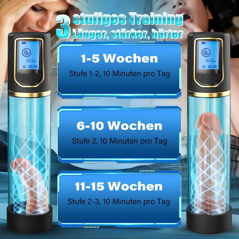 Wenn Sie Ihren Penis regelmäßig mit 8 kraftvollen Saugmustern trainieren, werden Sie erkennen, wie stark Ihr Penis ist! Es lässt sich nicht leugnen, dass die Verwendung einer Penispumpe ein wirksames Mittel zur Linderung von ED-Symptomen sowie zur Erforschung von Größe und Härte ist. Möchten Sie die Kontrolle über Ihr Sexualleben übernehmen? Verwenden Sie es, um Ihren Penis zu pumpen, die sexuelle Leistungsfähigkeit zu verbessern, bessere Erektionen zu bekommen und maximales Vergnügen zu erleben! !